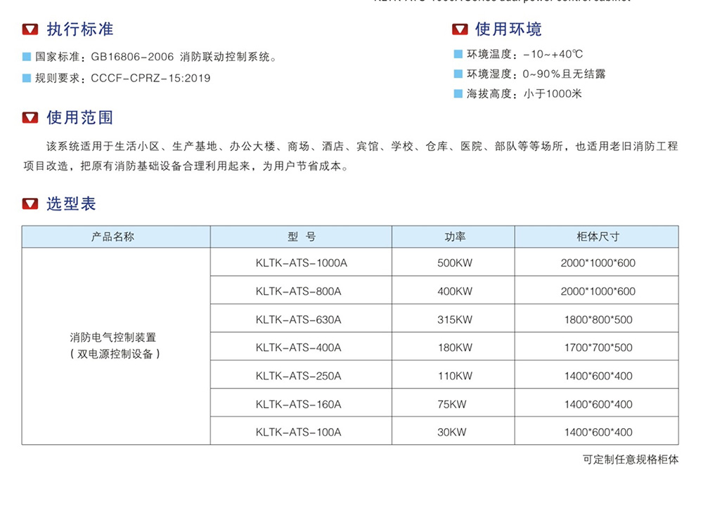 KLTK-ATS-1000A系列雙電源控制柜